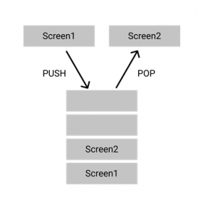 Gambar di atas menjelaskan bahwa halaman aplikasi flutter akan beradapa pada posisi dasar, pada contoh di atas ialah Screen1. Ketika akan berpindah ke halaman baru, flutter akan menggunakan perintah push sehingga halaman baru berada di atas rumpukan halaman sebelumnya. Pada contoh di atas, ketika menggunakan perintah push, Screen 2 berada di atas Screen 1. Nah setelah kita berada di Screen 2 dan ingin kembali ke Screen 1 kita cukup menggunakan perintah pop maka Screen 1 akan naik ke tumpukan paling atas.