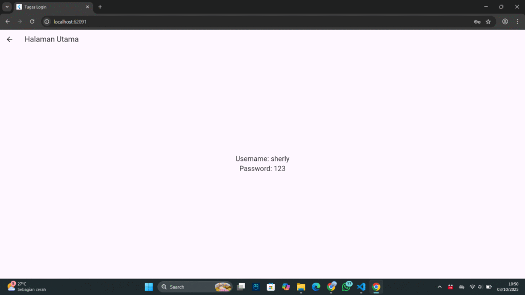 Buatlah halaman login dan halaman utama, kemudian inputkan username dan password,